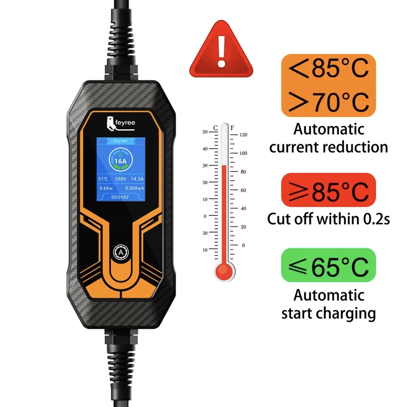 - [PORTABILITY] When you are traveling or visiting relatives and friends, you don’t have to worry about charging, because our charger can be carried with the car and you can check every charging data by LCD screen on the charger. All you need is just a CEE outlet to connect.